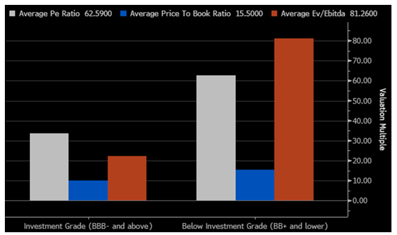 We believe one definition of quality is that, all else being equal, investors may be willing to pay a higher price to acquire the asset. If that definition is correct, the market may appear to be offering quality stocks at a discount. The chart on this page shows the relative value of high- and low-quality stocks based on their debt ratings across a number of valuation measures. Across each assessment shown, in our opinion, quality appears to be on sale.