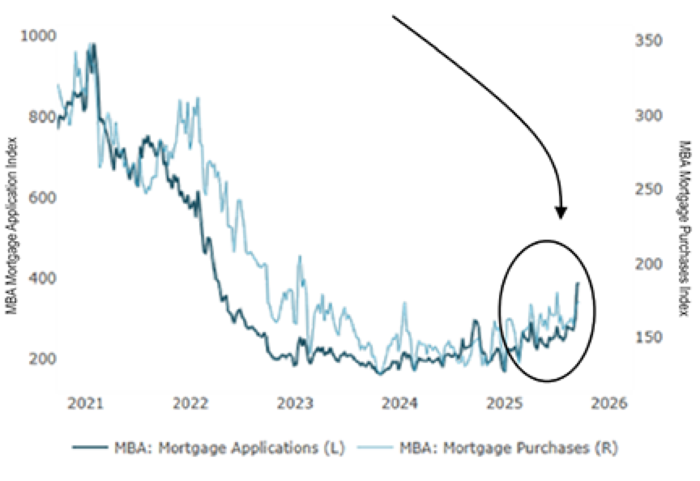 While there have been fits and starts in terms of housing starts over the past several years, the industry has arguably been undersupplied since 2008. According to national home builder Toll Brothers, from 2008 to 2024 in the U.S., average annual housing starts averaged 1.1 million per year versus 1.4 million or more from 1970 to 2007. With first time buyers, notably millennials entering prime household formation years, limited new construction may have left the nation in a structural supply and demand imbalance. Could lower rates improve affordability and new home sales? Lower rates may also encourage greater investment from current owners to invest in repairing and remodeling their homes. Housing may be an area of emerging thematic optionality for investors.